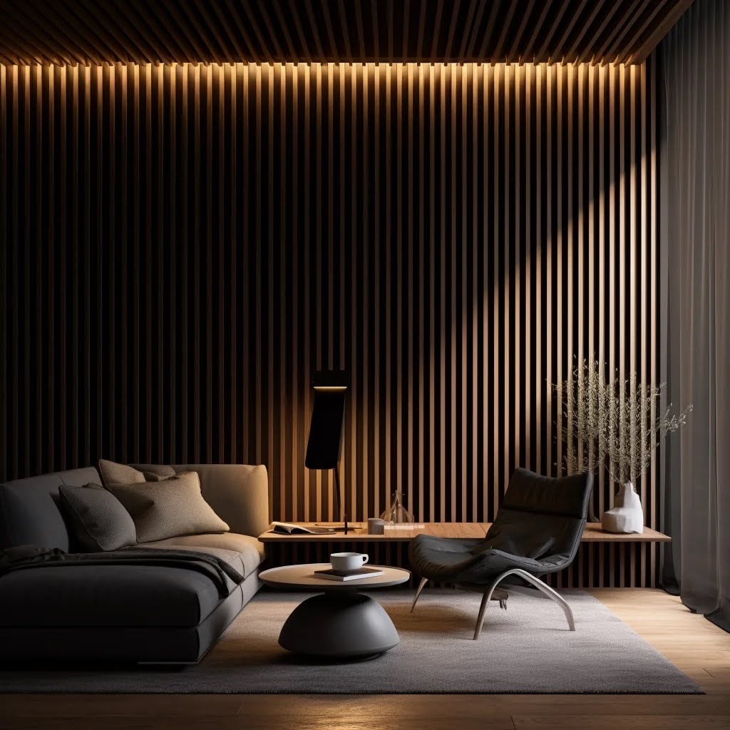 Innym pomysłem jest połączenie lameli z oświetleniem LED. Dzięki temu nie tylko uzyskamy dodatkowe, subtelne źródło światła, ale również wprowadzimy do wnętrza wyjątkowy klimat. Oświetlenie najlepiej zamontować między lamelami. W ten sposób podkreślimy też ich strukturę, która będzie przykuwać uwagę.