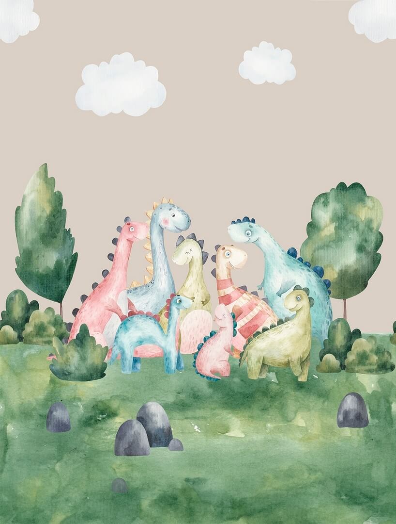 Mural Decoprint CW6003-5 Dino Land Cute Walls z radosnym wzorem przedstawiającym dinozaury. Wesołe zwierzęta zastawiają się w co tym razem będą się bawić. Mural pochodzi z katalogu Cute Walls, który jest dedykowany dzieciom, aby pobudzić ich wyobraźnię i kreatywność. Magiczne motywy, zabawne i kolorowe postacie staną się inspirującym tłem, które możne zachęcić do zabawy bądź nauki. Każdy projekt został zaprojektowany tak, aby stworzyć radosną atmosferę, którą dzieci pokochają. Dzięki kolekcji Cute Walls odwiedzicie dziką dżungle oraz jej zwierzęta, wesoły cyrk, skandynawski las, czy wysokie góry. Tutaj wesołe misie latają samolotami i balonami, dinozaury szykują się do zabawy, a zwierzęta leśne wyruszają na wycieczkę pełną przygód. Dzięki gotowym muralom Cute Walls od Decoprint odmienicie wnętrza w pokoju dziecka, które będą zachęcać do całodniowych i inspirujących zabaw. Kolekcja oferuje projekty dla dzieci i maluchów, motywy doskonale odnajdą się w aranżacji pokoju chłopca oraz dziewczynki.