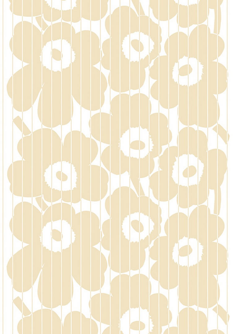Mural J&V 25995 Vesi Unikko Marimekko zaprojektowany przez Maiję Isolę w 1964 roku – to jeden z najbardziej rozpoznawalnych wzorów w historii współczesnego designu. Powstał jako śmiała, graficzna abstrakcja kwiatu, symbolizująca wolność twórczą, radość życia i niezależność. Dziś Unikko to nie tylko wzór, ale wręcz manifest estetyczny Marimekko. W wersji Vesi Unikko motyw ten zyskał nową interpretację – kwiatowa kompozycja została przełamana rytmicznym podziałem pionowych linii, które nadają muralowi lekkości i dynamiki, przypominając refleksy światła na tafli wody. Efekt ten wnosi do wnętrza subtelny ruch i nowoczesność, zachowując przy tym ponadczasowy charakter oryginalnego wzoru. To połączenie graficznej prostoty z organiczną formą czyni mural idealnym wyborem dla miłośników wzornictwa z duszą – takiego, które nie tylko zdobi przestrzeń, ale też opowiada historię.