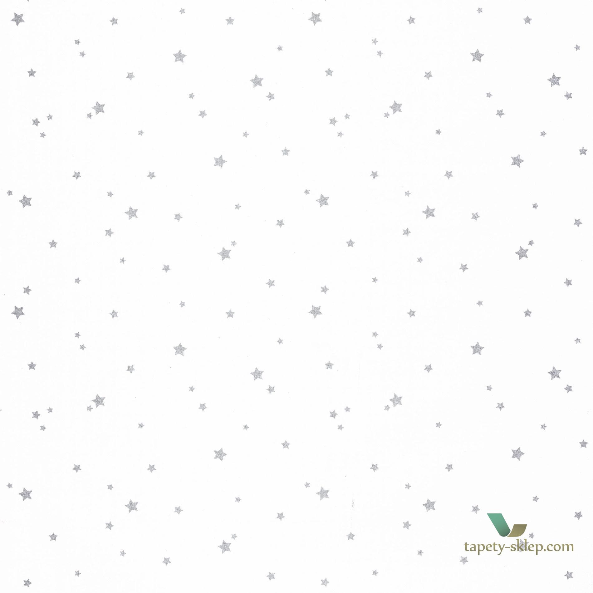 Tapeta firmy Caselio z dekoracyjnym wzorem w drobne, srebrne gwiazdki.