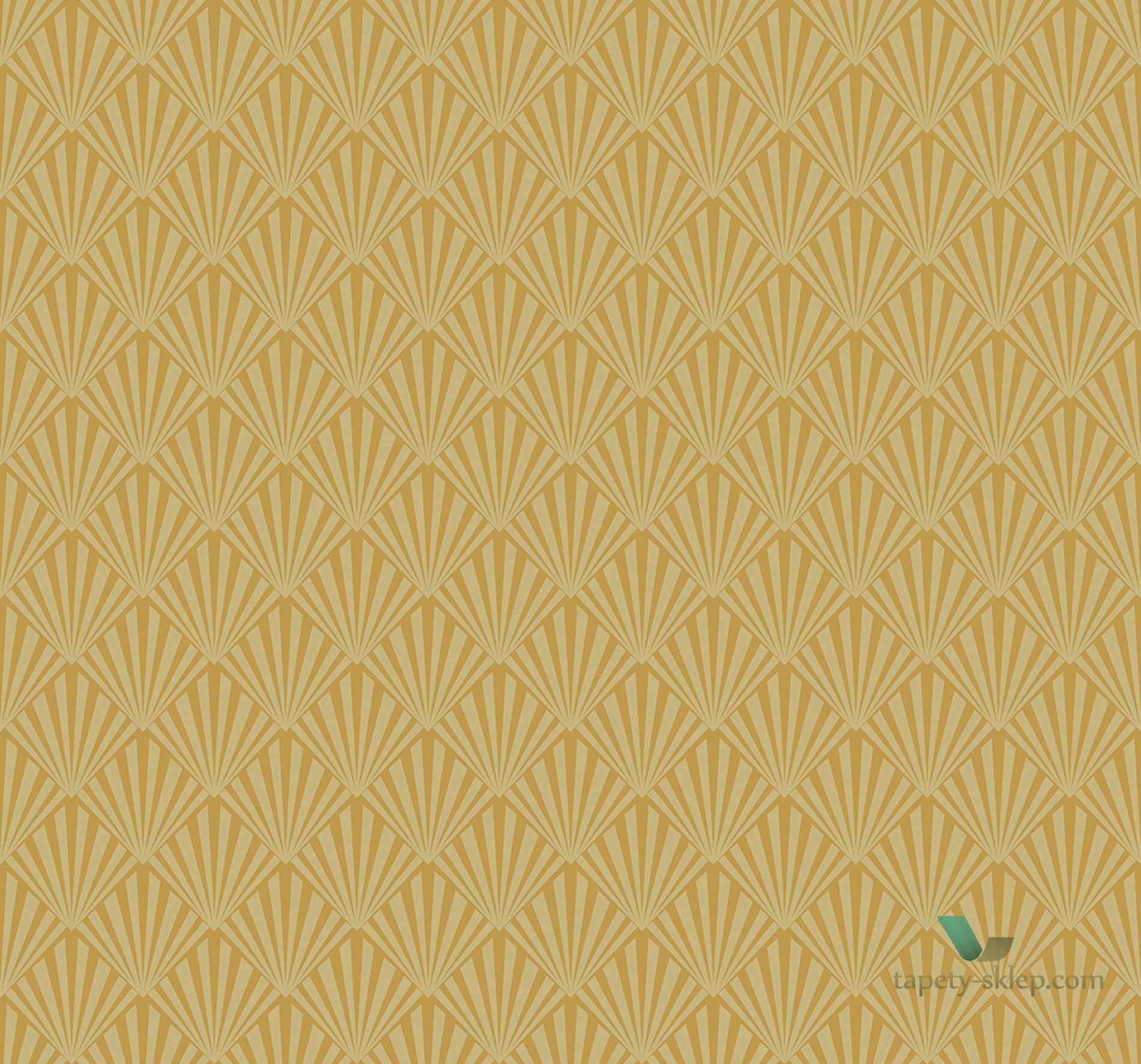Tapeta w nowojorskim stylu ozdobiona artdekowskimi wachlarzami. Geometryczny wzór pochodzi z kolekcji Skyline amerykańskiej firmy Wallquest.