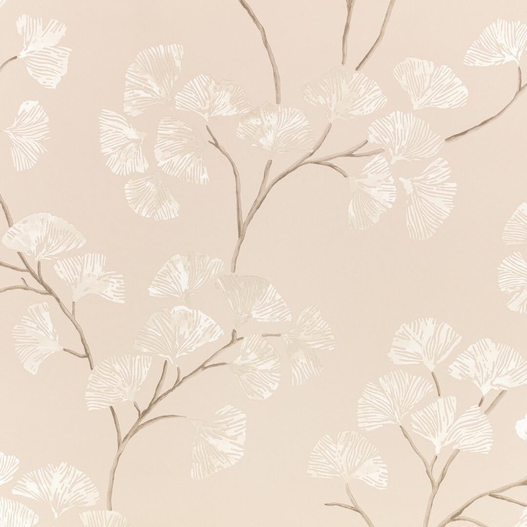 Tapeta Romo W467/04 Kiana Ottavia ukazująca liście miłorzębu japońskiego w kształcie wachlarza. Motyw wygląda jakby został namalowany ręcznie, dzięki czemu nabiera artystycznego charakteru. Błyszczące metaliczne odcienie emanują bogactwem, stanowiąc ozdobę wyrafinowanej palety neutralnych odcieni. Tapeta występuje w kilku odsłonach kolorystycznych, pochodzi z katalogu Ottavia. Ten wyjątkowy zbiór jest interpretacją pięknie zabawnej i atmosferycznej relacji między światłem a naturą. Projekty z tej kolekcji oddają esencję natury poprzez wyraziste pociągnięcia pędzla, misterne detale i dopracowane palety kolorów. Tutaj poczujecie zapach majestatycznych lasów oraz kwitnących kwiatów. Tapety i murale w artystycznym wydaniu, ukazują subtelne ale znaczące tekstury i przemyślane drobinki metalu, które dodają całości ostatecznej porcji intrygi i wyrafinowania.
