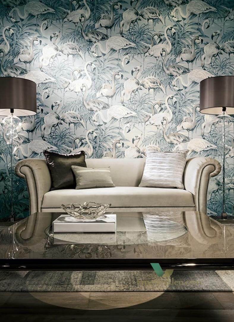 Elegancka tapeta we flamingi bez wątpienia przykuwa uwagę i stanowi ciekawą ozdobę wnętrza. Tapeta ze wzorem flamingów została naniesiona na tło przypominające tkaną trawę i jest wyczuwalna w dotyku. Bestselerowy motyw jest wykonany z winylu dzięki czemu sprawdzi się w każdej domowej przestrzeni w formie tapety we flamingi do sypialni, jadalni, kuchni, pokoju dziennego, przedpokoju, holu oraz łazienki. Tapeta ze wzorem flamingów może być też wykorzystana do obiektów użyteczności publicznej.